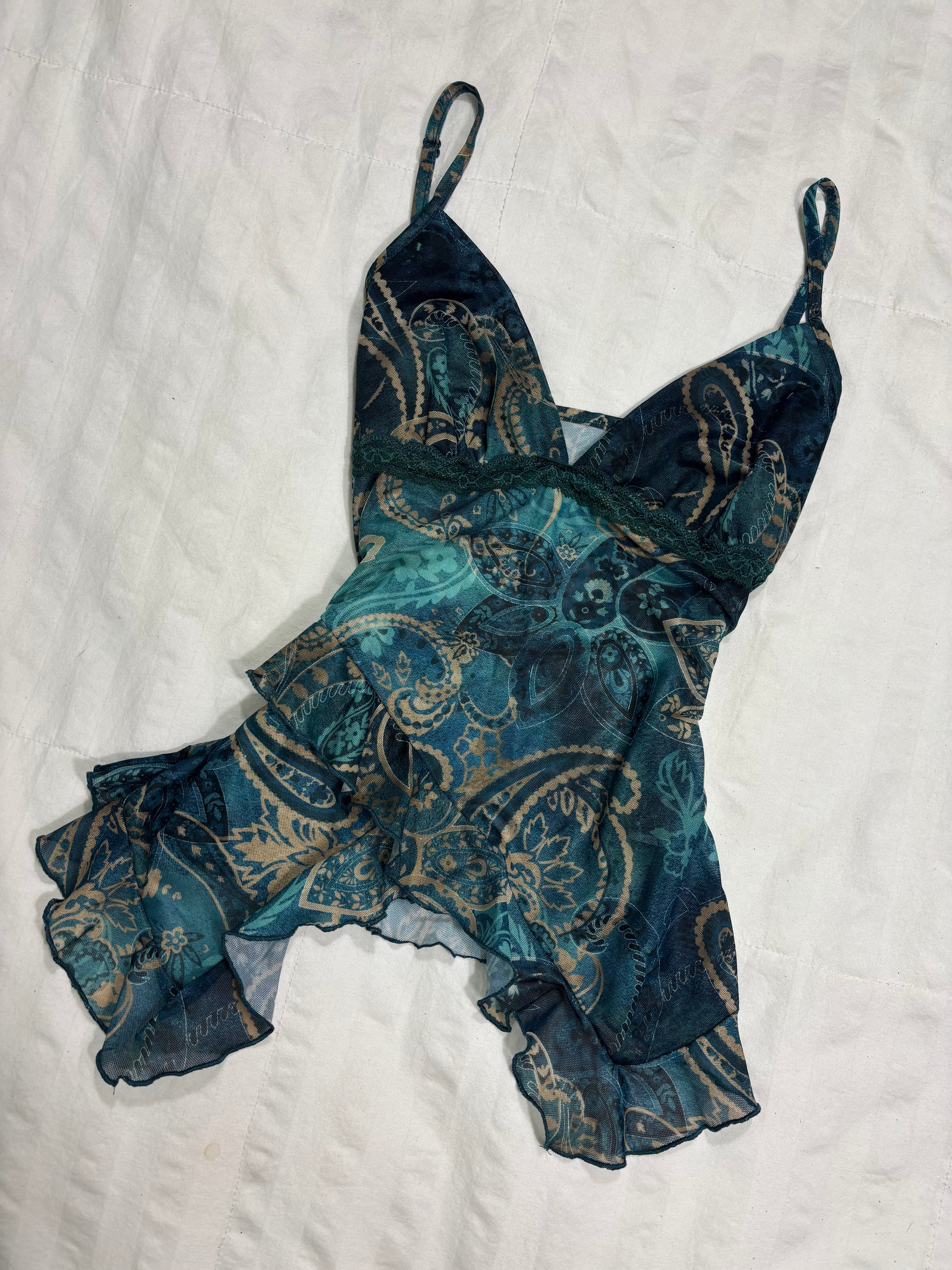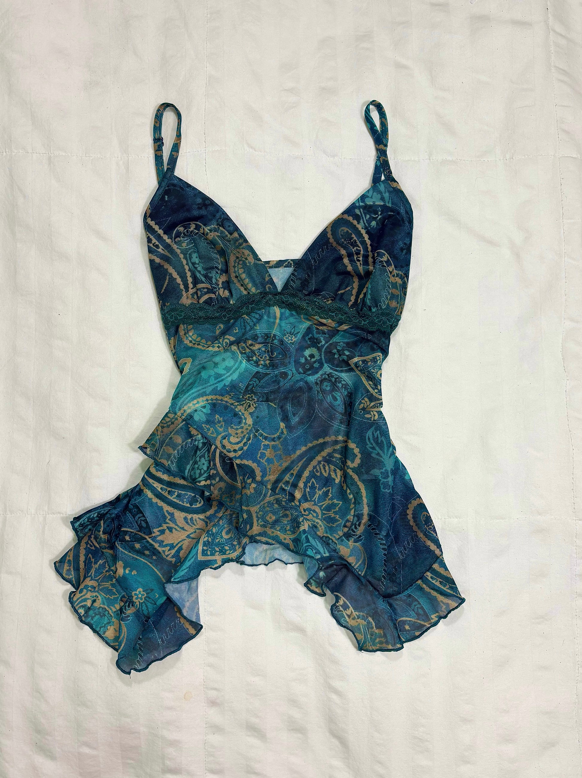 - Sheer teal paisley print cami top